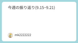 休みの記録 今週の振り返り(9.15−9.21) 本日は、今週9.15〜9.21の振り返りしていきたいと思います。9.15(月) 河川敷3キロラン9.16(火) 仕事も運... 2025.09.21 休みの記録