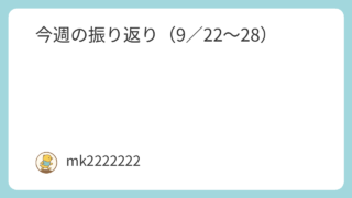 運動はじめました 今週の振り返り(9/22〜28) 今日は日曜日なので、今週の振り返りをしたいと思います。前半・9/22〜9/249/22(月) 筋トレ20分9/23(祝火... 2025.09.28 運動はじめました