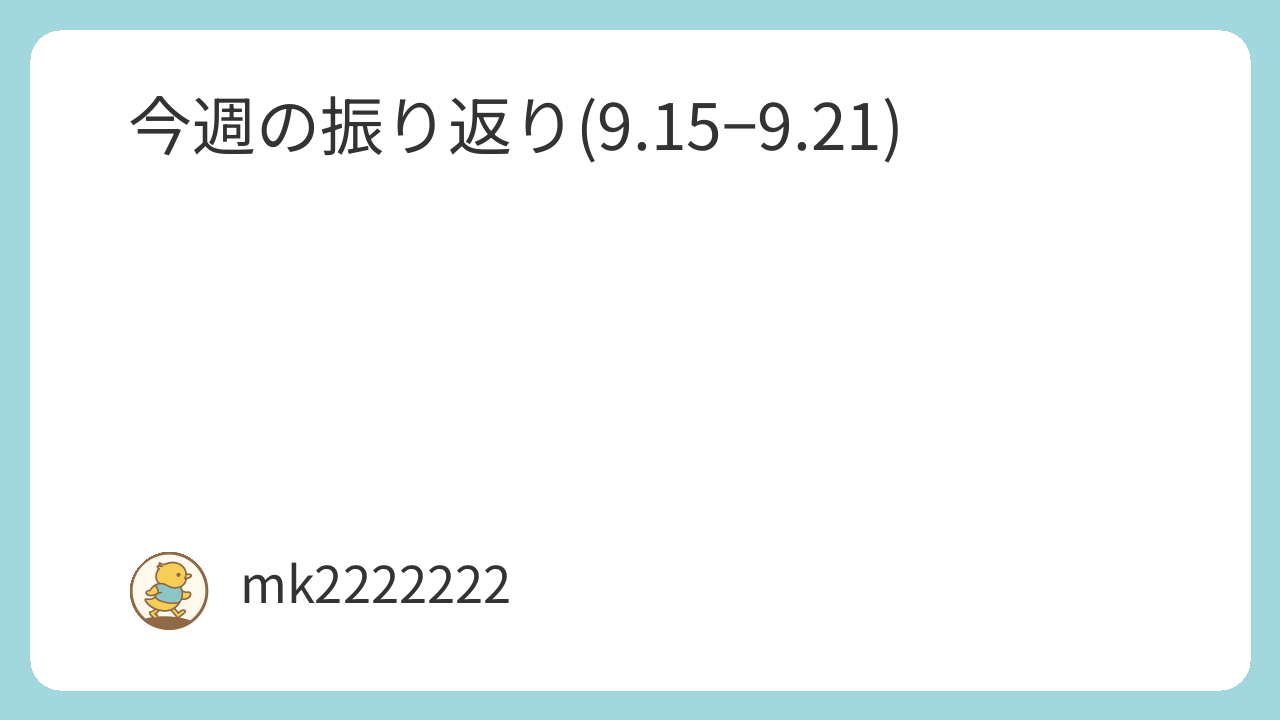 本日は、今週9.15〜9.21の振り返りしていきたいと思います。