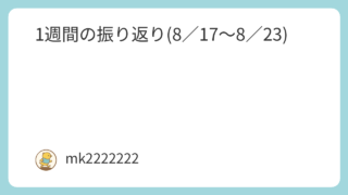 運動はじめました 1週間の振り返り(8/17〜8/23) 今日も暑い。明日もきっと暑い。いったいいつまで暑いんだろう。。今週は色々予定もあって、ワークアウトの運動はできなくても、... 2025.08.24 運動はじめました