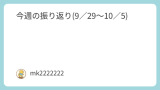 さて、日曜日は今週の振り返りをしたいと思います。前半(10/13〜15)10/13(月) 運動お休み10/14(火) 運...